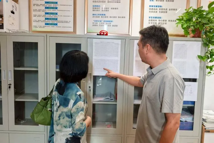 在教育教学检查环节,曹督学重点关注了课程设置与作息时间安排。她查看了学校总课表、班级课程表,了解课程开齐开足情况,特别是体育、美育、劳动教育等课程的落实,强调要科学合理安排学生在校时间,保证学生充足的休息和活动时间,促进健康成长。她还随机走入教室外围观课,了解课堂实施状态。