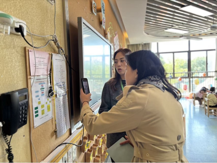 在深入班级观察时,督导也始终将 “安全” 融入细节考量。翻阅班级一周保教活动计划表时,不仅了解幼儿生活与学习节奏,更重点询问计划表中 “安全教育活动” 的安排情况,确认是否定期开展防磕碰、防走失、应急避险等主题教育,确保安全意识培养融入幼儿日常。