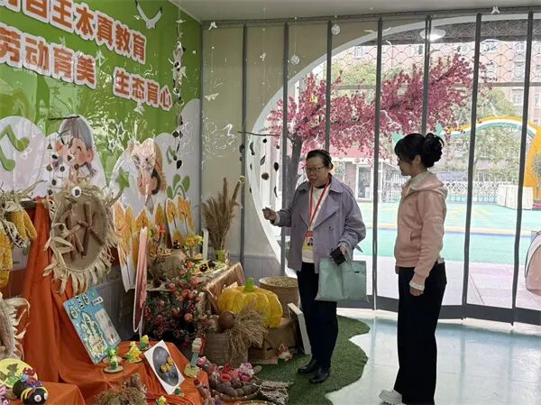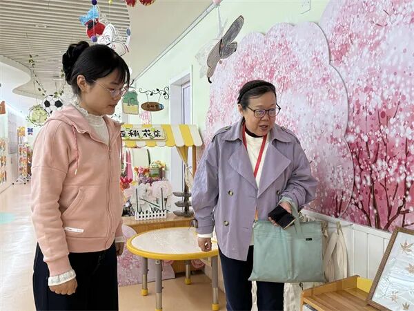 在检查过程中,刘督学对幼儿园的晒秋的小景创设表现出浓厚兴趣。她走进班级活动区,仔细观察主题墙饰、游戏区域划分以及幼儿作品展示,深入了解园所的教育理念在环境中的落实情况。刘督学表示温馨、丰富、适宜的环境是幼儿探索学习的重要保障,同时对桃蹊分园在环境创设中体现出的教育性、童趣性和艺术性给予了高度评价。
