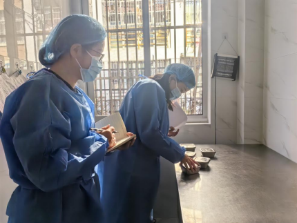 接着深入厨房每个角落认真查看设备、环境卫生、餐具消毒、留样贮存、制作加工和食堂各项消毒记录等,对幼儿园日常的工作给予肯定,同时对以后的工作给予了更细致的指导。