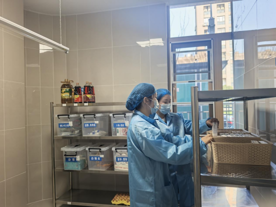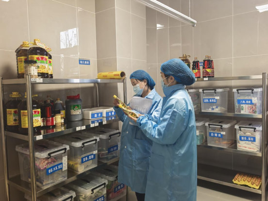 随后王督学深入幼儿园食堂,全面核查食品仓库、洗消间、留样间等核心区域。在食堂操作区,重点检查操作台卫生、厨具摆放及工作人员操作流程,核实生熟加工区域隔离措施;在原料储存间,核对食材保质期、检验证明,检查冷藏冷冻设备运行温度;重点核查食品留样分量、时长及记录规范性;在洗消间,检查餐具清洗、消毒、烘干全流程及消毒设备运行参数,核实消毒记录完整性。最后,查阅食品经营资质、晨检台账、采购台账、从业人员健康证明等资料,确保完整有效。通过实地巡查,王督学对幼儿园各项安全、管理工作给予肯定的同时也对部分细节问题提出合理化建议。