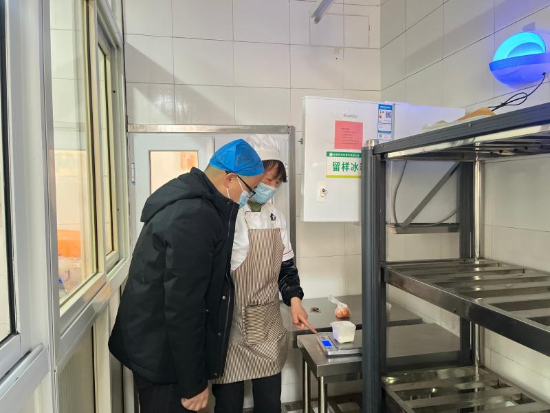 现场查看:以“细”为基,筑牢规范防线 谢督学深入幼儿园各个区域,以“实地核验、动态检查”的方式,重点核查办园规范与安全管理落实情况。在班级现场,谢督学观察每个班级现场情况,了解当前时间点幼儿状态和老师行为,确保老师工作符合规范。在门卫室,督学详细检查保安配置数量、防爆器械配备情况,并现场考核保安对监控系统、一键报警装置等技防设施的操作熟练度,确保 “人防、物防、技防” 三位一体的安全防线无漏洞。在食堂关键区域,谢督学重点查看食品留样,核对留样食品的重量和标签信息,确认冰箱实行“双人双锁”管理,检查了当天菜品菜样,对当季温度低保温措施未到位情况给了明确建议。