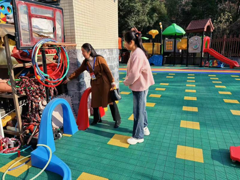 随后,沈督学实地查看了园内消防设施配备情况,仔细核对了灭火器、消防栓的有效期,认真翻阅了消防设施日常检查记录,要求园所务必做到消防设施定期维护、检查记录详实规范,确保关键时刻 “拿得出、用得上”。在巡视操场户外玩具区时,沈督学发现玩具摆放较为杂乱,存在一定安全隐患,随即提出优化建议,要求园所采用分类筐对户外玩具进行分区整理收纳,既方便幼儿取用,又能有效规避因玩具堆放杂乱引发的磕碰风险。此外,沈督学还深入各班级,观摩幼儿的日常活动情况,查看班级安全管理细节。