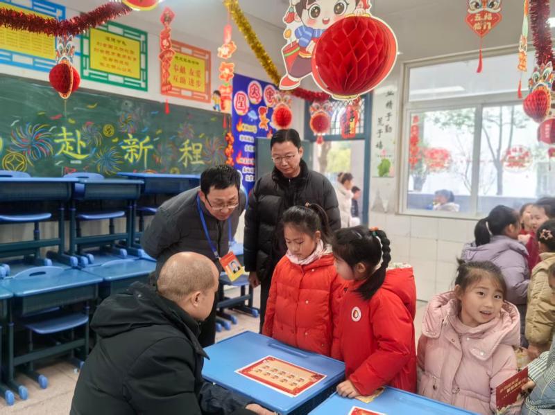 校长黄涛与庐阳区第十一督学责任区责任督学张羽共同莅临活动现场,对测评进行了全程视察与指导。黄涛校长深入各个测评关卡,饶有兴致地观看了孩子们在“句子糖葫芦”、“图形辨识家”、“速算小火箭”等环节中的精彩表现,并亲自体验了部分测评道具,对老师们将学科知识巧妙转化为游戏情境的创意设计给予了高度肯定。张羽督学细致观摩了测评流程,不时与正在进行挑战的学生亲切交流,询问他们的感受,并对学校以过程性、激励性评价取代传统纸笔考试的大胆探索和有序组织表示赞赏。