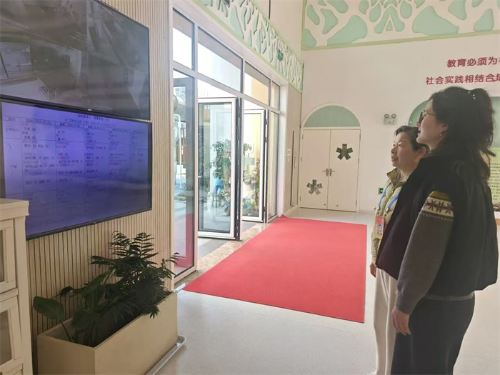 随后,钱督学围绕办园规范、食品安全、校园安全等核心工作展开细致核查。在规范办园方面,认真查看园区收费公示、园务公开等内容,逐项核对信息公示的规范性与透明度,对园所坚持阳光办园、透明管理的举措予以肯定。在食品安全管理上,通过“明厨亮灶”实时查看食堂后厨操作流程,细致检查食材采购、储存加工、食品留样、餐具消毒等关键环节,再三叮嘱后勤工作人员严守食品安全底线,全力保障幼儿饮食健康与安全。同时,对校园消防设施、户外游戏场地、班级教学设施等进行全面排查,要求园所持续细化安全管理,做到隐患零容忍,为幼儿构建全方位安全防护网。
